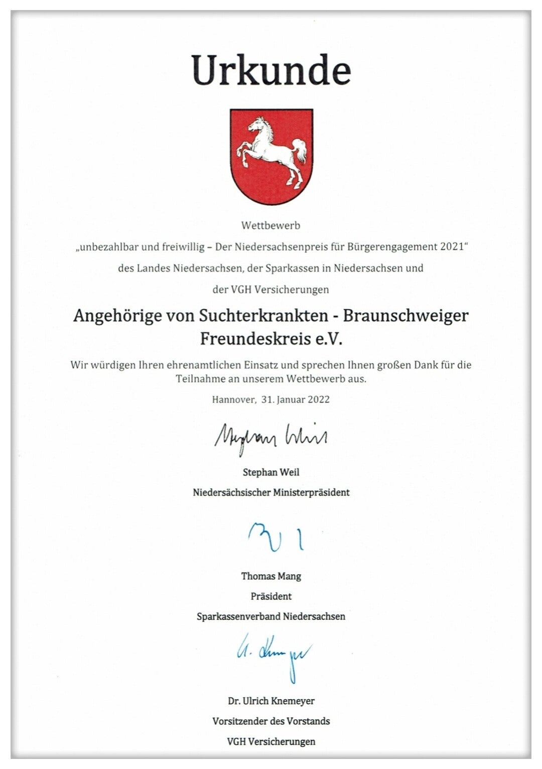 Eine Gruppenauszeichnung in 2023 - Selbsthilfepreis Niedersachsen